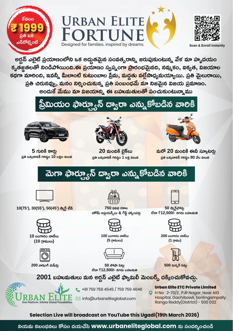 గెలిచే అవకాశం పొందండి 5- ఫ్లోర్ అపార్ట్మెంట్ 6 ఓపెన్ ప్లాట్స్ 5 కార్లు 520 5 20 EV స్కూటర్లు మరెన్నో సూపర్ రివార్డ్స్... ఇప్పుడే స్కాన్ చేయండి అజిస్ట్రేషన్ పూర్తి చేయండి మీ ఫార్చూన్ గెలుచుకునే ఛాన్స్ మిస్ చేసుకోకండి!
