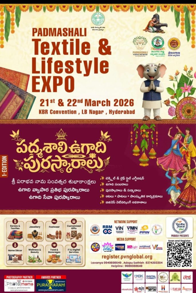 శ్రీ పరాభవ నామ సంవత్సర ఉగాది సందర్బంగా నగరంలోని ఎల్ బి నగర్ కెబిఆర్ కన్వెన్షన్ లో 21,22 తేదీలలో పద్మశాలి టెక్స్టైల్ & లైఫ్ స్టయిల్ ఎక్స్పో నిర్వహించడం జరుగుతోంది. ఈ సందర్బంగా తెలంగాణ రాష్ట్ర పద్మశాలి సంఘం అధ్యక్షులు శ్రీ వల్లకటి రాజకుమార్ తదితర కార్యవర్గ సభ్యులు జంటనగరాల్లో , మేడ్చల్ మల్కాజిగిరి జిల్లాలోని పద్మశాలి సంఘాల కార్యవర్గ సభ్యులను కలసి రెండు రోజుల కార్యక్రమాలలో పద్మశాలి కులబాందవులు పెద్ద ఎత్తున పాల్గొని విజయవంతం చేయవలసిందిగా ఆహ్వానించారు. దాదాపు ముప్పై సంఘాలకు చెందిన కార్యవర్గ సభ్యులకు ఆహ్వానం అందజేయడం విశేషం. పౌరోహిత్యం నేర్చుకుని పూజా కార్యక్రమాలు, వేడుకలు నిర్వహించే పద్మశాలి పండితులను రెండు రోజుల కార్యక్రమాల్లో సత్కరిస్తున్నారు. ఈ ఎక్స్పో సందర్బంగా హెల్త్ క్యాంపు కూడా నిర్వహించడం జరుగుతోంది. హెల్త్ క్యాంపులో ప్రముఖ సినీ నటుడు శ్రీ బాబూ మోహన్ హెల్త్ క్యాంపు ఆర్గనైజషన్ తరుపున మరియు ఆత్మీయ అతిధిగా విచ్చేస్తున్నారు. అధ్యక్షులు రాజకుమార్ తో పాటు ఇప్పలపల్లి రమేష్ ,ఉపాధ్యక్షులు వనమాల శంకర్ , సెక్రటరీ వల్లకటి శ్రీనివాస్ , ఆర్గనైజింగ్ సెక్రటరీ ఎలిగేటి దేవేందర్ వారికి ఆహ్వానం అందజేశారు. ఈ ఎక్స్పో కు హాజరయ్యే వివిధ సంఘాల అధ్యక్ష, కార్యదర్శి, కోశాధికారులను సన్మానించాలని తెలంగాణ రాష్ట్ర పద్మశాలి సంఘం నిర్ణయించింది. అంతేకాక వివిధ ప్రాంతాలలో ఉన్న పద్మశాలి ప్రముఖుల మధ్య పరిచయాలు, వ్యాపార వృద్ధికి ఎక్స్పో తోడ్పడగలదు. ఆహ్వానం అందజేయడానికి పీర్జాదిగూడ పద్మశాలి సేవ సంఘానికి వెళ్ళినప్పుడు వారు వెలువరించిన కొత్త సంవత్సరం క్యాలెండర్ ఆవిష్కరణ కార్యక్రమంలో కూడా రాష్ట్ర సంఘం నాయకులు పాల్గొన్నారు. పలు ప్రాంతీయ పద్మశాలి సంఘాలు క్యాలెండర్లు వెలువరించడం ఈ ఏడాది ప్రత్యేకత.