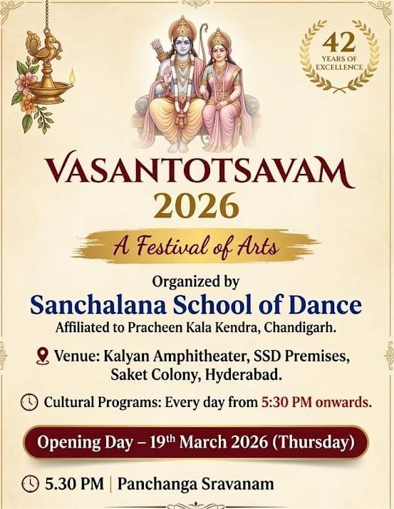 తెలంగాణ ప్రాంత సంస్కార భారతి , చండీగఢ్ కు చెందిన ప్రాచీన్ కళా కేంద్రకు అనుబంధంగా ఏర్పాటైన సంచలన స్కూల్ ఆఫ్ డ్యాన్స్ సంయుక్త ఆధ్వర్యంలో ఉగాది నుంచి శ్రీరామనవమి వరకు వసంతోత్సవం -2026